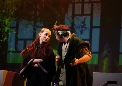 Mozarts Märchenoper spielt in der Neuinszenierung von Opernregisseurin Julia Riegel in der Welt der Gamer. Der junge Tamino ist leidenschaftlicher Videospieler und begibt sich in seinem neuen Fantasy-Spiel mit Euch auf eine Reise durch ein magisches Zauberland. Ein gewitzter Vogelfänger, eine eigenwillige Flöte und eine schillernde, durchaus wehrhafte Prinzessin spielen die Hauptrollen. Es geht recht turbulent zu, Tamino verliebt sich in Prinzessin Pamina, obwohl er sie noch nie gesehen hat. Der lustige Papageno weiß sowieso alles besser – wie die Erwachsenen eben auch. Paminas Mutter, die Königin der Nacht, ist vielleicht doch nicht so böse, wie alle immer glauben. Und auf einmal tauchen auch noch Peter Pan und Schneewittchen auf. Lasst Euch überraschen …